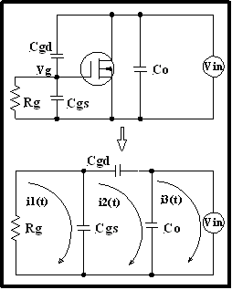 其中:Vg (t) =門極電壓;a = 漏極電壓的擺率;Rg = 包括門極驅(qū)動器的總門極電阻;Cgs = 門極與源極之間的電容;Cgd = 門極與漏極之間的電容;顯然,Cgd越大,則耦合電壓越大。