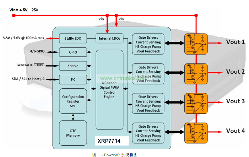 過去可以使用模擬電路或 FPGA 完成相移同步時鐘。 很遺憾,這會增加額外的組件、成本和開發(fā)工作。令人欣慰的是,當(dāng)今市場上有多個數(shù)字 PWM 控制器集成了同步和相移。在本文中,Exar 的 PowerXR 技術(shù)展現(xiàn)了相移的優(yōu)點,如圖 1 所示。
