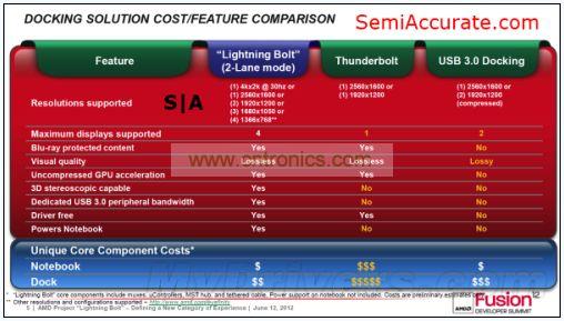 AMD的Lightning Bolt技術(shù)與Intel雷電接口比的不是更高的帶寬,而是針對后者在多設(shè)備連接及充電上的不足上有備而來。