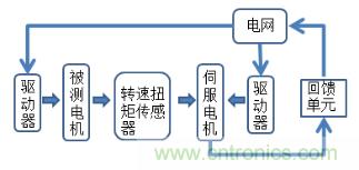 伺服電機(jī)可以進(jìn)行電機(jī)對拖,公共直流母線采用單獨的整流/回饋裝置,為系統(tǒng)提供電能,調(diào)速用逆變器直接掛接在直流母線上,當(dāng)系統(tǒng)工作在電動狀態(tài)時,逆變器從母線上獲取電能;當(dāng)負(fù)載被被測電機(jī)反向拖動的時候,伺服電機(jī)將會變成發(fā)電機(jī),能量通過母線及回饋裝置直接回饋給電網(wǎng),以達(dá)到節(jié)能、提高設(shè)備運行可靠性等目的。