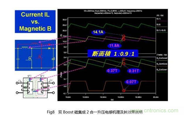 對于功率大的PV逆變器,因其常常采用雙Boost的結(jié)構(gòu),為此若進一步引入2合一式的磁集成(Integrated Magnetics)技術(shù),還可以進一步提高效率,降低成本。