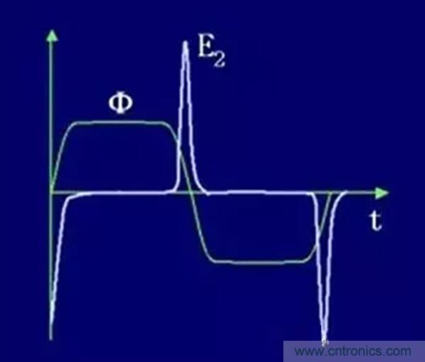 鐵芯飽和,使隨時間變化的磁通波形變?yōu)槠巾敳?。在波形上升和下降處,因磁通急劇變化在二次繞組內(nèi)所感應的電勢可達幾千伏甚至更高,對設備和人員是極其危險的。