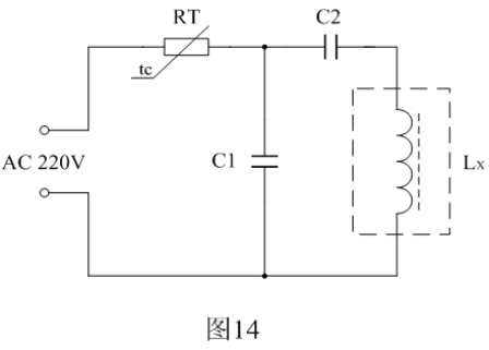 圖14中RT為熱敏電阻,Lx為行推動變壓器的初級線圈,C1為分流電容,C2為限流電容。電容C1和C2的大小,需根據(jù)行推動變壓器初級線圈勵磁電流的大小來決定。一般消磁電流需要達(dá)到極限電流Imax的3~5倍。