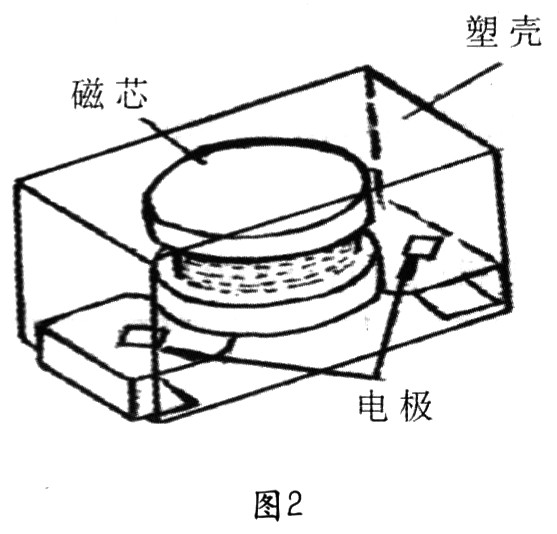 另一種形式的片式電感器是片式繞線電感器,這是對(duì)傳統(tǒng)繞線型電感器的一種改進(jìn),采用微小型工字型磁芯,經(jīng)繞線、焊接、電極成型、塑封等工序制成,見圖2。這種類型的片式電感生產(chǎn)工藝簡(jiǎn)單,電性能優(yōu)良(電感量大,品質(zhì)因素高),適合于大電流通過,可靠性好。但受磁芯尺寸和制造工藝限制,進(jìn)一步微小型有困難。