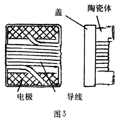 [page]還有一種片式繞線電感是采用H型陶瓷芯,經(jīng)過繞線、焊接、涂復(fù)、環(huán)氧樹脂灌封等工藝制成,見圖3,由于電極已預(yù)制在陶瓷芯體上,制造工藝更加簡(jiǎn)單,而且可以進(jìn)一步小型化。這類電感的電感量較小,但自諧振頻率高(通常為5~6GHz,最高達(dá)12.5GHz),更適合高頻使用。