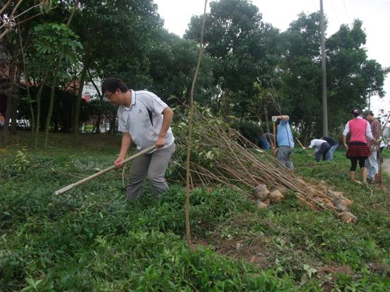 植樹現(xiàn)場大家熱火朝天的干活