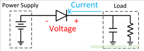 基于這些原因,肖特基二極管是常見(jiàn)的替代器件;它們的正向壓降更低。不過(guò),它們也更加昂貴,且具有更高的反向電流泄露,而這會(huì)導(dǎo)致系統(tǒng)問(wèn)題。圖2顯示的是系統(tǒng)中的一個(gè)用來(lái)阻斷反向電流的二極管。