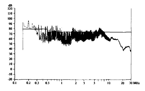 圖1未加任何抑制措施所測得的傳導騷擾