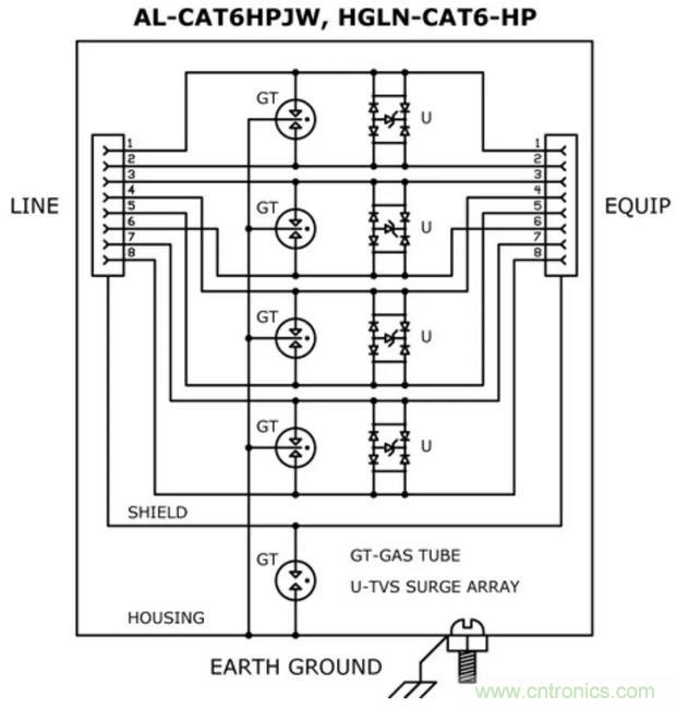受電設備的供電設備通常配備絕緣的直流-直流轉換器,以最大限度地降低暴露帶電導體造成用戶傷害以及發(fā)生接地環(huán)路的風險。此外,為了避免發(fā)生接地環(huán)路,浪涌保護器本身也可能需要將其與安全地線具有不同電勢的電纜屏蔽層絕緣。還需要注意的重要一點是,PoE浪涌保護器件可分為模式A(電源引腳:1/2及3/6)兼容器件和模式B(電源引腳:4/5及7/8)兼容器件。一般而言,大多數支持PoE的交換機為模式A設備,而注入器為模式B設備。某些浪涌保護器可同時為模式A和模式B兼容器件。