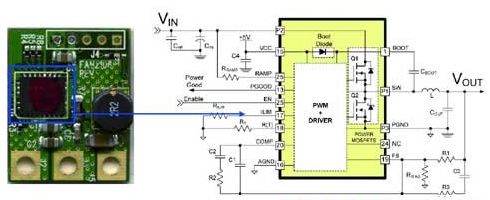 2.上述帶驅(qū)動(dòng)器和MOSFET的分立式解決方案也備有8x8mm或6x6mm MLP封裝的MCM(多芯片 模塊)。這些DrMOS(DriverMOS)產(chǎn)品系列包括 8x8mm產(chǎn)品FDMD87xx和6x6mm產(chǎn)品FDMF67xx,可滿足不同的設(shè)計(jì)要求。而評(píng)估板則可協(xié)助設(shè)計(jì)人員熟悉應(yīng)用,并測(cè)試性能以便與分立式解決方案相比較(圖5)。