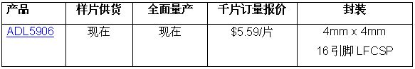 ADL5906 RF檢波器可以輕松配合ADI公司的各種模數(shù)轉(zhuǎn)換器進行設(shè)計,包括12位ADC AD7466。