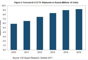 - 今年俄羅斯液晶電視出貨量預計將增長至650萬臺