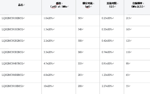- LQH系列產(chǎn)品中最小最薄的是LQH2MC_52系列