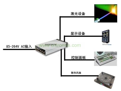 設(shè)備總功率約為1,100W,滿足醫(yī)療設(shè)備認(rèn)證,需要四組不同直流輸出,首先是大電流的48V、20A用于激光設(shè)備, 其次需要一個18V用于LCD顯示器,再次需要一個5V用于控制面板,最后還需要一個12V用于系統(tǒng)散熱風(fēng)扇。這個客戶找了很多品牌的產(chǎn)品都無法定型,因?yàn)殡娫聪到y(tǒng)太復(fù)雜,價(jià)格太高,占用的空間太大,最后他選擇了Excelsys,在40.5×260×127mm(1U高)的封裝內(nèi)解決了問題。
