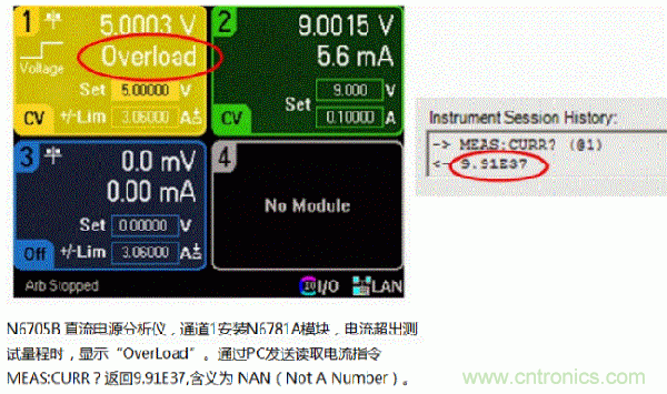 【導(dǎo)讀】有些電源為了提高測試精度或降低測試的噪聲支持多個量程。當電壓或電流實際值超出你設(shè)定的測量量程時會出現(xiàn)什么情況呢?電源讀值中出現(xiàn)不是數(shù)的數(shù)(NAN)又該怎么處理?