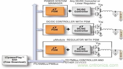 由于要面對(duì)這些挑戰(zhàn),因此凌力爾特決定開(kāi)發(fā)一個(gè) PSM 產(chǎn)品線,其包括具集成型功率 FET 柵極驅(qū)動(dòng)器和豐富齊全之電源管理功能 (通過(guò)基于 I2C 的 PMBus 來(lái)使用) 的同步降壓型 DC/DC 控制器。這些功能包括高精度基準(zhǔn)和可提供 ±0.5% DC 準(zhǔn)確度的溫度補(bǔ)償型模擬電流模式控制環(huán)路、經(jīng)過(guò)校準(zhǔn)以不受工作條件之影響的簡(jiǎn)易型補(bǔ)償、逐周期電流限制、快速和準(zhǔn)確的均流、以及針對(duì)線路電壓和負(fù)載瞬變的響應(yīng),并不存在任何與 ADC 量化相關(guān)聯(lián)的誤差,此類誤差是采用 “數(shù)字” 控制之產(chǎn)品中所常見(jiàn)的。該產(chǎn)品線的某些產(chǎn)品還內(nèi)置了可提供輸入和輸出電壓及電流、占空比和溫度之?dāng)?shù)字回讀的 16 位數(shù)據(jù)采集系統(tǒng)。另外,還整合了通過(guò)一個(gè)中斷標(biāo)記及一個(gè) “黑匣子” 記錄器 (其負(fù)責(zé)存儲(chǔ)發(fā)生某種故障之前的轉(zhuǎn)換器工作狀況) 實(shí)現(xiàn)的故障記錄功能。