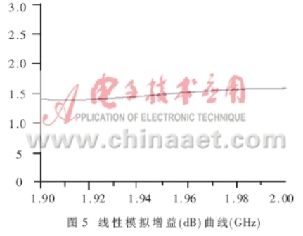 除了能夠得出增益、NF、P1dB和輸入輸出回波等重要參數(shù)外,軟件模擬還能夠得出關(guān)于電路設(shè)計穩(wěn)定性的信息。它是電路能否正常工作的重要前提。模擬軟件計算Rollet穩(wěn)定性因子K和作穩(wěn)定性圓是兩種很容易做到的方法,它們可以明確地表示出穩(wěn)定性的數(shù)據(jù)。圖7示出的Rollett穩(wěn)定因子K的模擬值(K>1)表明:在1.9~2.0GHz工作帶寬范圍,電路能夠?qū)崿F(xiàn)無條件穩(wěn)定。