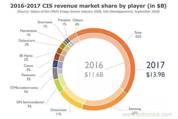 2016年和2017年CIS主要廠商的市場(chǎng)份額