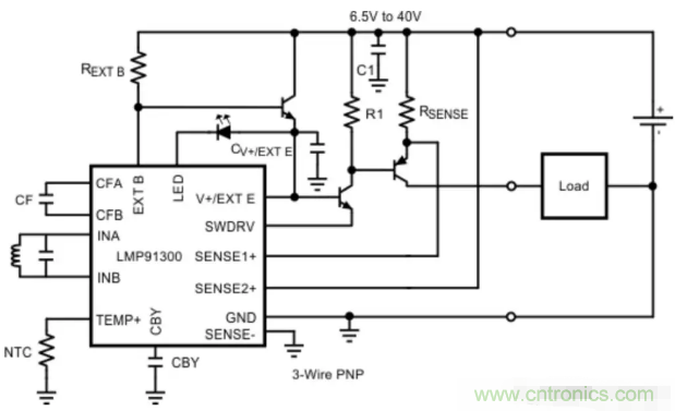 內(nèi)部穩(wěn)壓器允許該器件在6.5V至40V的電源范圍內(nèi)工作??梢詫敵鲞M行編程,以NPN或PNP模式驅(qū)動外部晶體管。